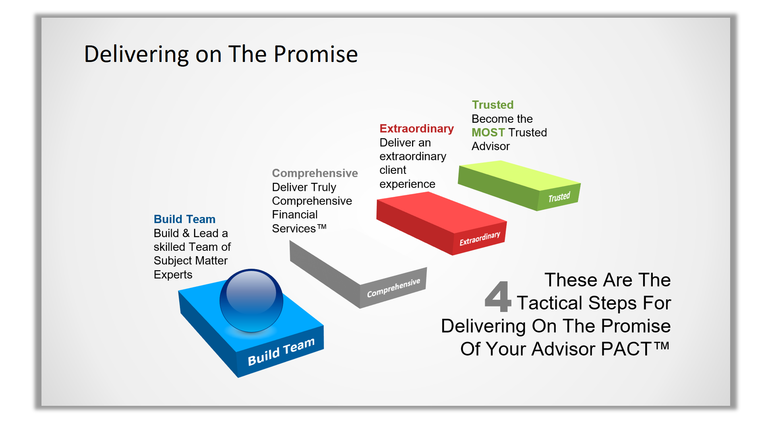 He begins by showing advisors how to lead a Strategic Planning Session to set a unified team vision for delivering Truly Comprehensive Financial Services™. Mark explains the four tactical steps to becoming the “only game in town”: building a skilled Deliverables Team™, implementing comprehensive services, delivering an extraordinary client experience, and earning the client’s trust as their most Trusted Advisor™.