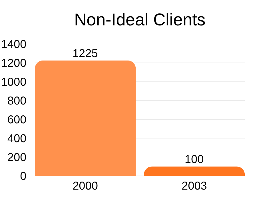 At the end of 1999, I started disengaging from 1,225 of my clients, and kept just 17 “ideal” clients who perfectly fit my criteria for “the type of client I serve the best.”
